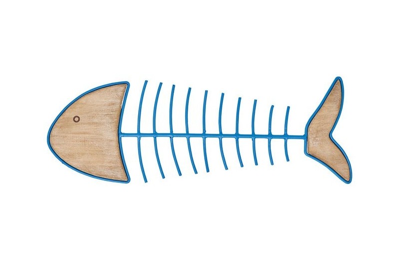 Pesce decorativo da parete, realizzato artigianalmente con acciaio e legno.
