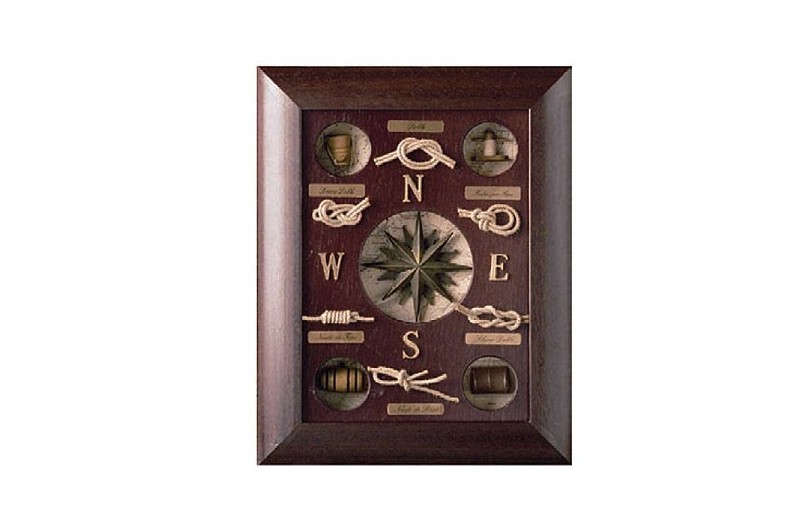 Pittura decorativa marina in legno. Al suo interno spicca una rosa dei venti.