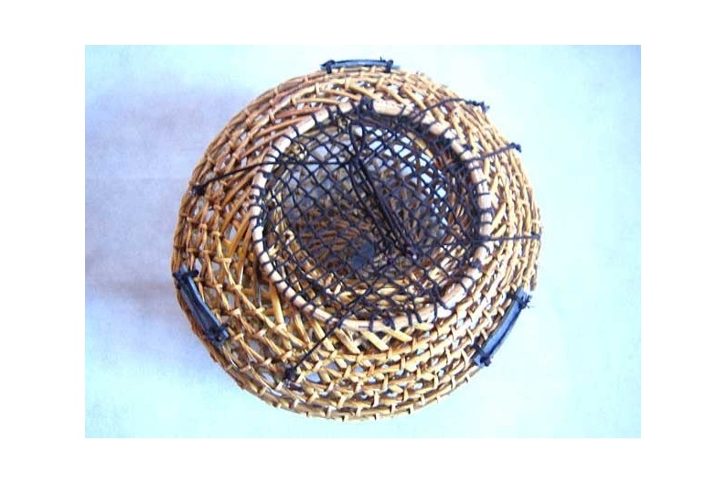 Rete da pesca realizzata in vimini intrecciato con un'armatura a forma di imbuto rovesciata all'interno della quale sono posizionate le esche per catturare i pesci, in particolare le rocce. Oggetto marino che regalerà un'aria di vacanza all'interno.