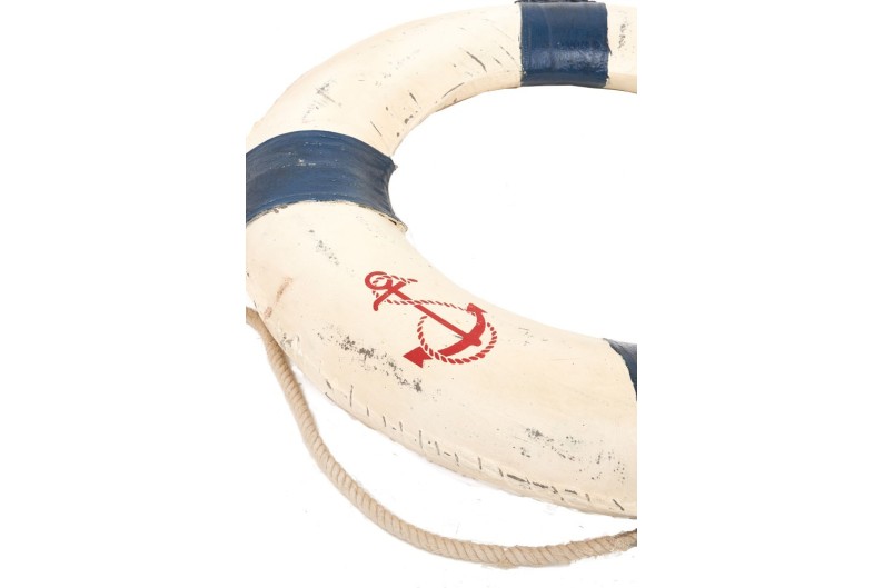 Replica esatta di un salvagente, ideale per dare un tocco marino alla decorazione. Realizzato in porexpan all'interno e ricoperto da una tela di cotone. La corda di cotone legata attorno ad esso serve per potersi trattenere.