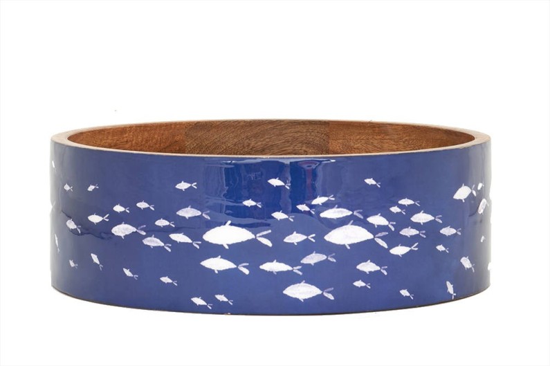 Ciotola realizzata in legno da tè di prima qualità, smaltata all'esterno con stampa di pesci. Ideale per disporre la frutta al centro della tavola.