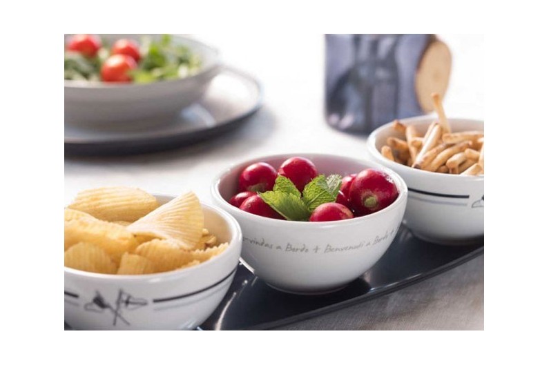 Set di 3 ciotole snack più vassoio, dal design accattivante.