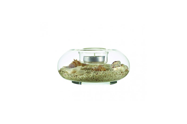 Castiçal de estilo náutico, com areia natural e conchas, que oferecem um ambiente marinho agradável.