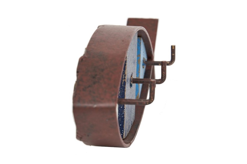 Cabide de chaves, feito à mão de madeira e aço, em forma de peixe.
