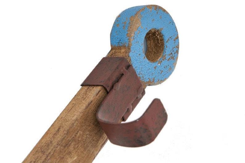 Cabide com base em madeira e cabide em aço, em forma de âncora.