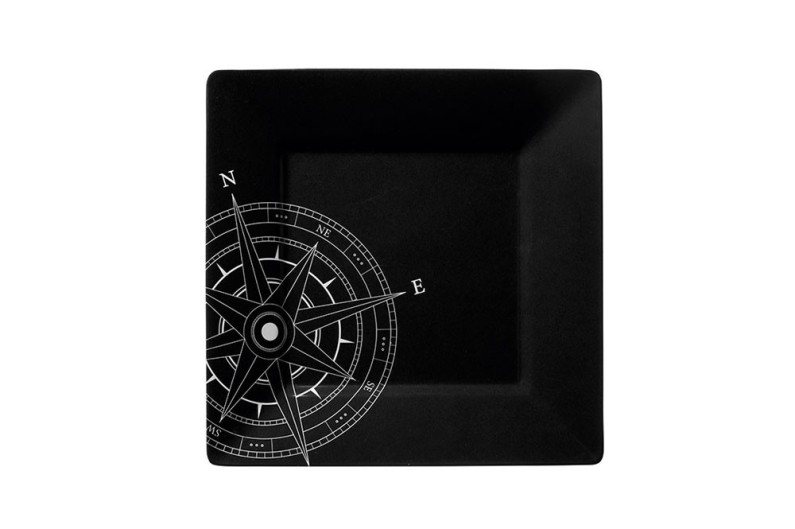 Conjunto de 6 unidades de prato de sobremesa de belo desenho, branco e preto.