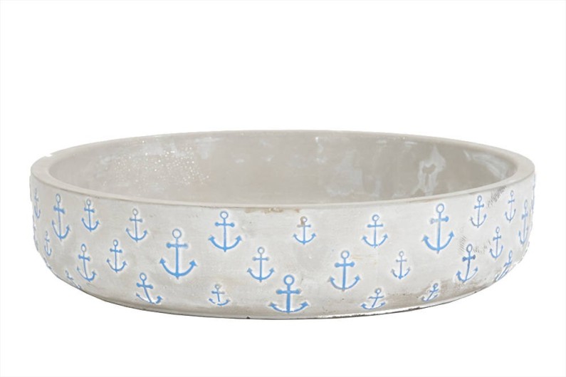 Tigela de cimento com âncoras gravadas. Ideal para colocar fruta no centro da mesa.