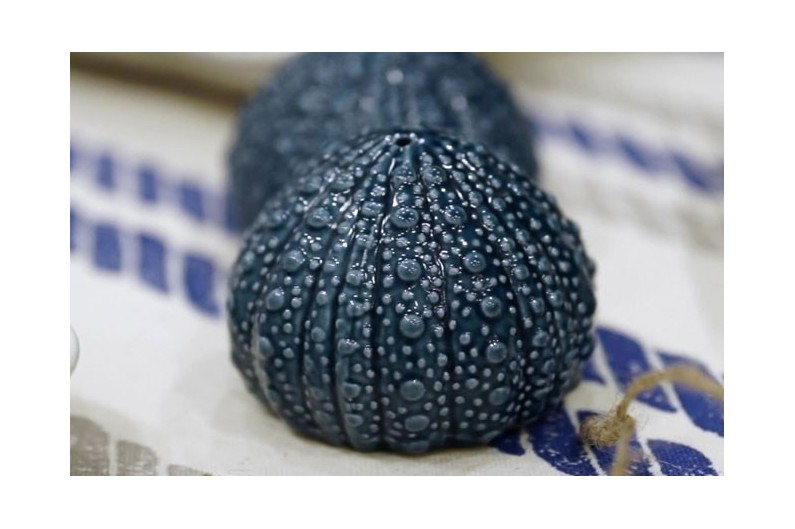 Salteador de sal e pimenta de cerâmica em forma de ouriço do mar.