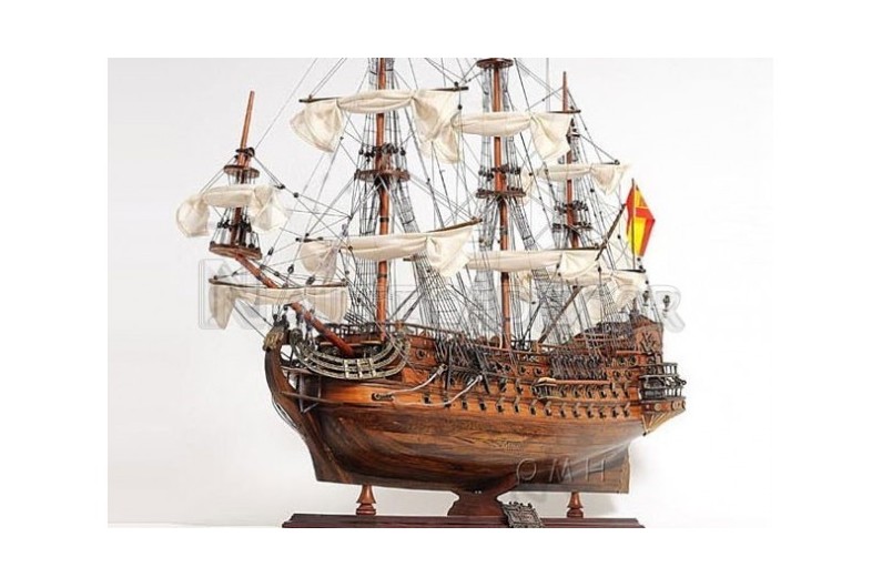 galeões espanhóis do século XVII e um dos primeiros navios losGaleon San Felipe 3 pontes, armados com 100 armas, mas com um design elegante. Ela era o navio de ligação da Marinha espanhola, que lutou contra os britânicos e os franceses. Em 1744 ele foi danificado durante um confronto com os navios britânicos e rebocado em Cartagena. Acabamentos decorativos modelo em uma madeira de alta qualidade, pintadas e totalmente montado assim artesanal.Embalaje em caixas individuais.