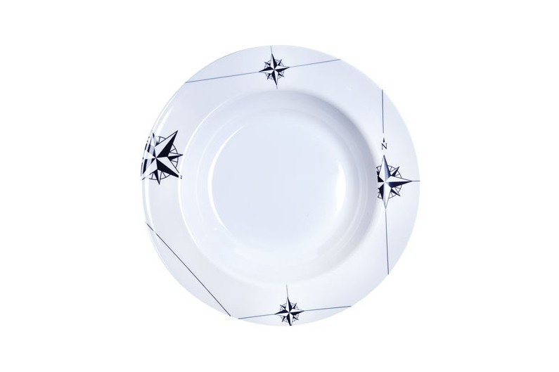 Conjunto de 6 unidades prato fundo, de desenho bonito, branco e azul.