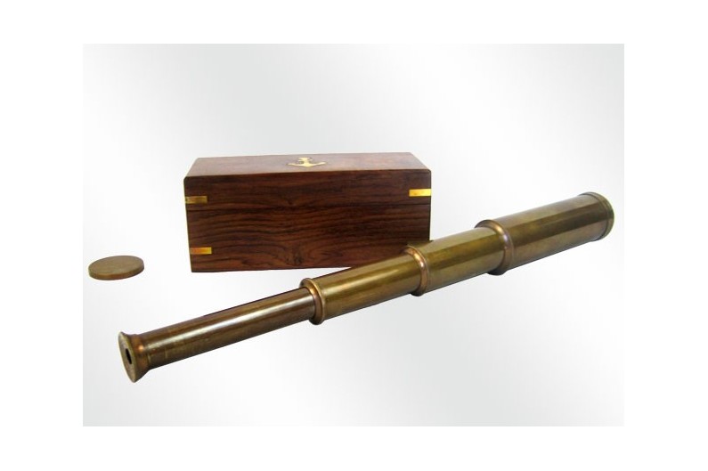 Bonita réplica de um óculo de idade, feita de bronze, com um tratamento especial. Inclui caixa de madeira com interior revestido com âncora inscrito. Depois estendeu o óculo tem um comprimento de 38 cm. Ele funciona perfeitamente, mas seu uso deve ser exclusivamente decorativo.