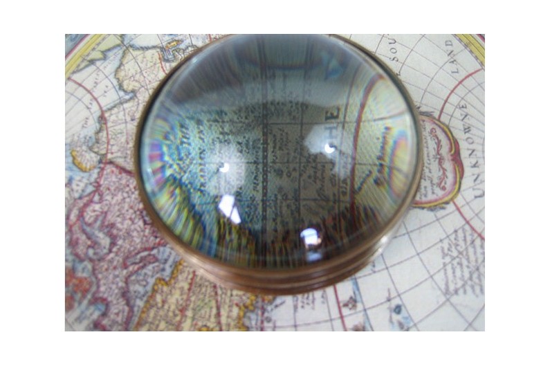 Lente de aumento antigo de decoração, usado nos séculos XVIII e XIX para aumentar as cartas nauticas. Ideal como uma lembrança em eventos e convenções de negócios, ou um presente original.