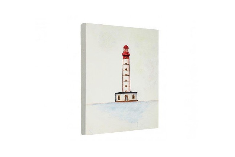 Cópia da pintura do marinheiro. Reprodução de uma pintura de faro "Saint Mathieu" impressa em um pano de algodão e montada em uma armação de madeira.