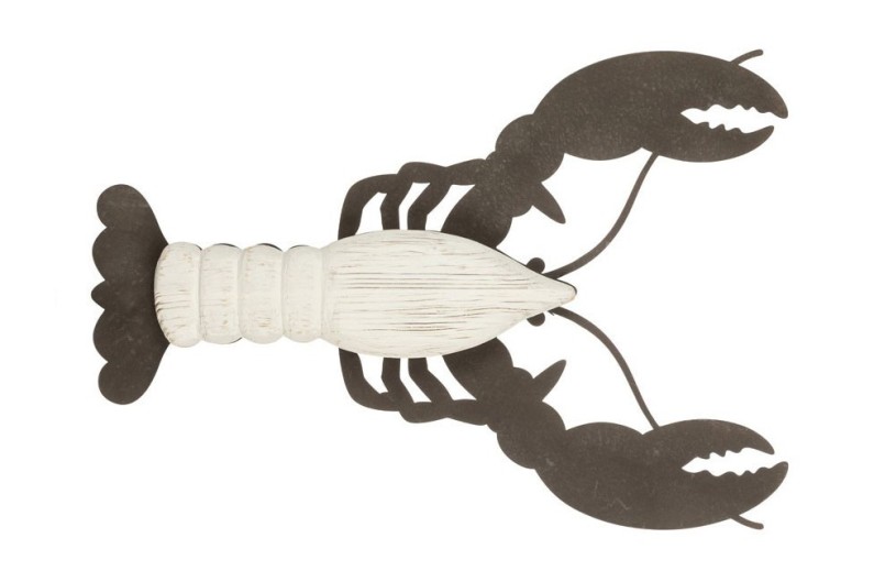 Figura decorativa de lagosta do mar em madeira e metal, para pendurar na parede.