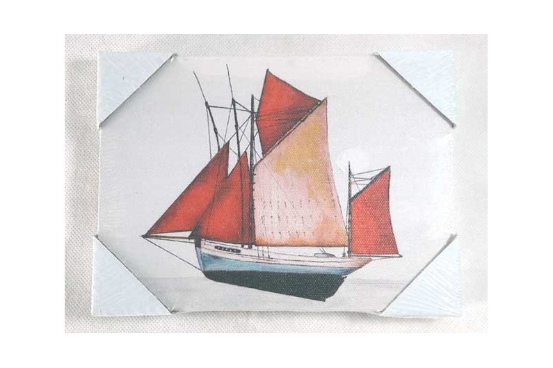 Cópia da pintura do marinheiro. Reprodução de uma pintura de veleiro marítimo impressa em um pano de algodão e montada em uma armação de madeira.