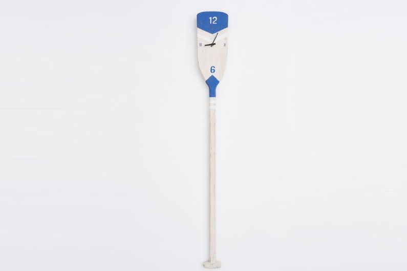 Relógio de quartzo sobre pá de madeira feito e pintado à mão. Decore a sua casa, restaurante ou hotel com este relógio de inspiração náutica.