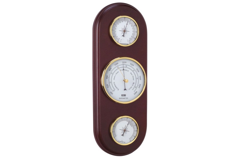 Estação meteorológica. Tem Umidade, pressão atmosférica  e temperatura pode executar uma previsão de tempo básica. Eles são montados em uma estrutura de madeira.