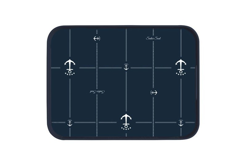 Bandeja retangular desenho bonito, fundo de cor azul.